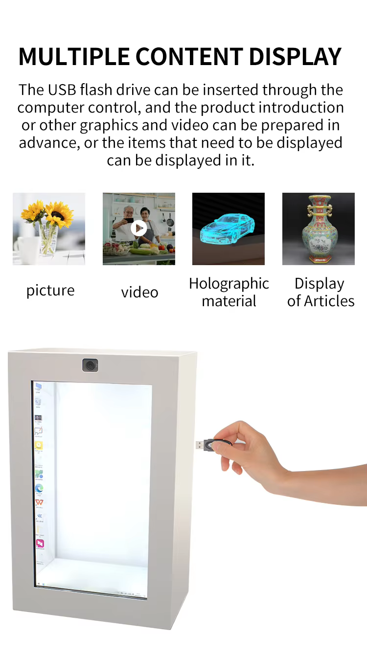 | தயாரிப்பு பெயர் | உட்புற ஊடாடும் எல்சிடி உருவப்படம் நிகழ்நேர திட்ட அமைச்சரவை 3D விளம்பரம் மெய்நிகர் பெட்டி ஹோலோபாக்ஸ் வெளிப்படையான காட்சி காட்சி பெட்டி |