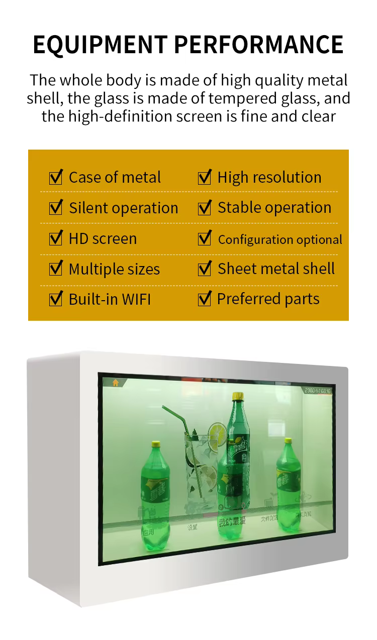 | பயன்படுத்தவும் | விளம்பரம் வெளியீடு, சில்லறை கடை, வணிக மால், உணவுகளின் காட்சி, வரவேற்பு காட்சி, சுய சேவை வணிகம், கண்காட்சி மண்டபம், வேஃபைண்டிங், விமான நிலையம், சுரங்கப்பாதை, லிஃப்ட், உணவகம் மற்றும் ஹோட்டல் பொருட்கள், கல்வி, மருத்துவ சிகிச்சை |