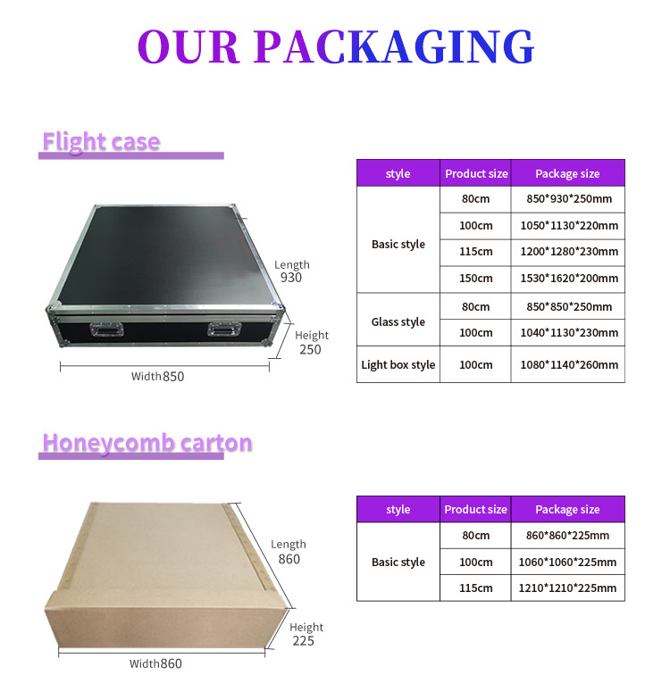 | பொருட்கள் | மென்மையான கண்ணாடி இயங்குதளம் + எல்.ஈ.டி கீற்றுகள் + லிஃப்டர் | இயங்குதள அளவு | 100 செ.மீ. |