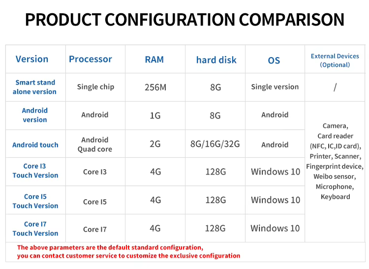 CPU: இன்டெல் கோர் I3 /i5 /i7 விருப்பம் AMMEMEMORY: 4G /8G விருப்பத்தேர்வு வட்டு: 120G /256G SSD, அல்லது 500G /1T HDDINTERFACE: RJ45 /WIFI /4G /HDMI /USB /SDTOUCH திரை (விரும்பினால்)