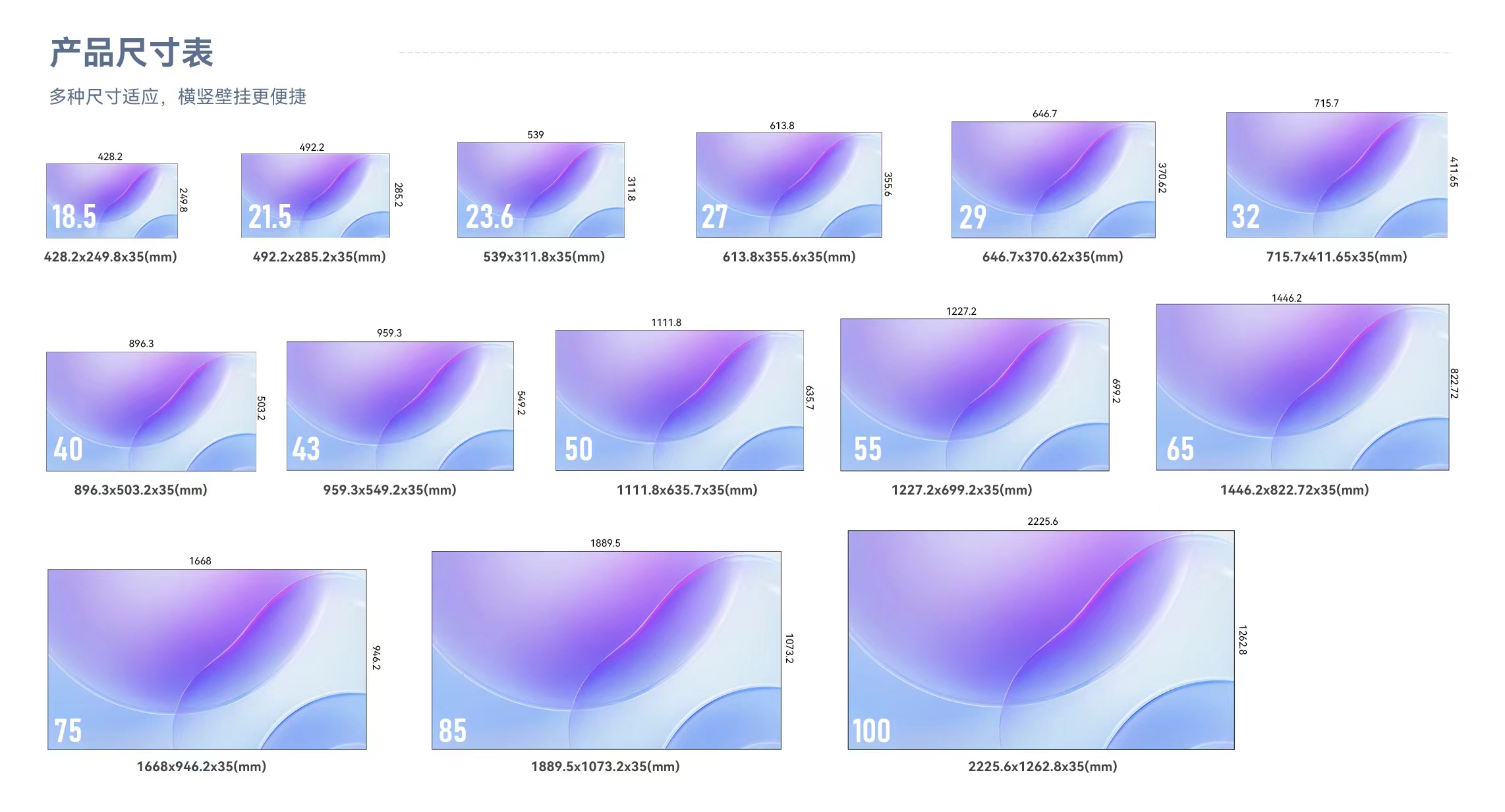 | எல்சிடி திரை அளவு | 21.5/32 "/43"/50 "/55"/65 "விருப்பமானது |