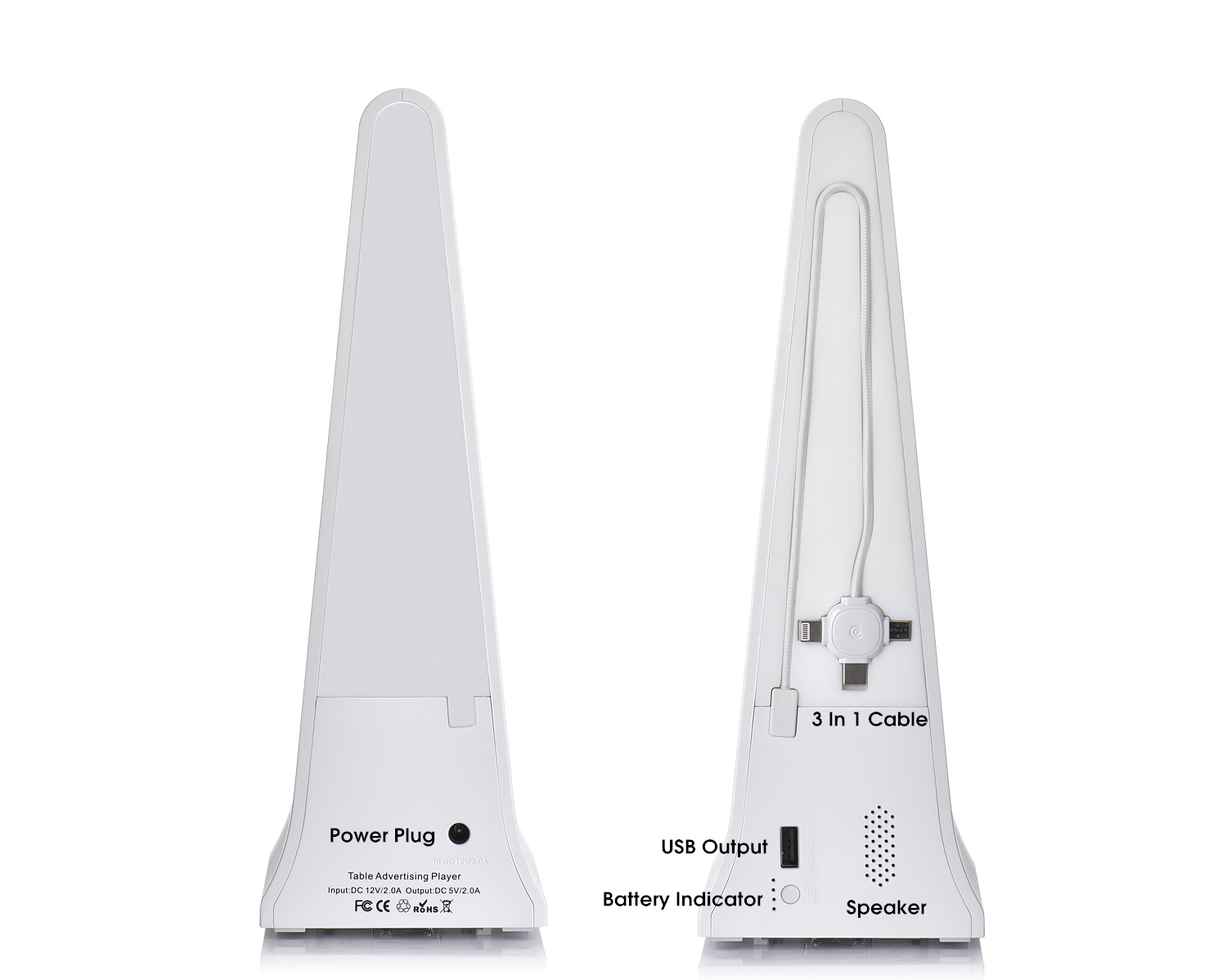 ★அம்சங்கள்:1. கோப்பை : RK PX30 / ARM கார்டெக்ஸ்-A35 குவாட்-கோர் / 1.5GHz 2. ரேம் 1G + 16G சேமிப்பகத்துடன் ஆண்ட்ராய்டு 8.1 3. டூயல் 8 இன்ச் எச்டி எல்சிடி டச் ஸ்கிரீன், பெர்ஃபெக்ட் வியூ ஆங்கிள் 4. திரைத் தீர்மானம்: 800 x1280 பிக்சல்கள் 5. எங்களின் கிளவுட் அடிப்படையிலான CMS மென்பொருள்: காட்சி ADS மெனு, ஆர்டர் உணவு, அழைப்பு வெயிட்டர் போன்றவை. உங்களுக்கு பிற செயல்பாடுகள் தேவைப்பட்டால், அதைச் செய்ய உங்கள் சொந்த அல்லது பிற APK ஐ நிறுவலாம். 6. மோஷன் சென்சார்: 5 மீட்டர் பகுதிக்குள் மக்கள் திரை ஆட்டோ டிஸ்ப்ளேவைக் கண்டறியவும் 7. பிரிக்கக்கூடிய பேட்டரி: ★ Samsung18650 Lithium Cell ★ ஒரே இரவில் ரீசார்ஜ் செய்யவும் ★ அதிகபட்சம் 28000mAh ஆதரவு 40 மணிநேர திரை காட்சி 8. 3 இன் 1 ஃபோன் கேபிள்: விருப்பமாக பில்ட்-இன் அல்லது ஃபோன் சார்ஜிங்கை வழங்க வேண்டாம் 9. விருப்பமானது: 4G,NFC,Camera செயல்பாடுகளைச் சேர்க்கவும் 9. சான்றிதழ்: காப்புரிமை வடிவமைப்பு , CE, RoHs, FCC, MSDS, UN38.3 , UL 10. உத்தரவாதம்: தொலைபேசி கேபிள் மற்றும் உடைந்த திரை தவிர 1 வருடம் |