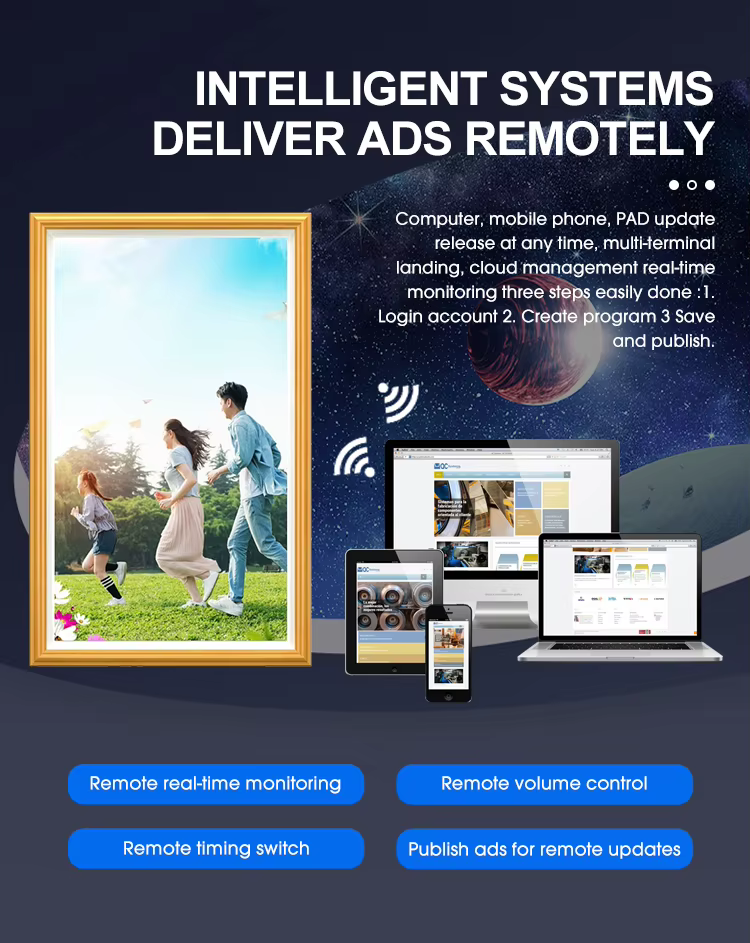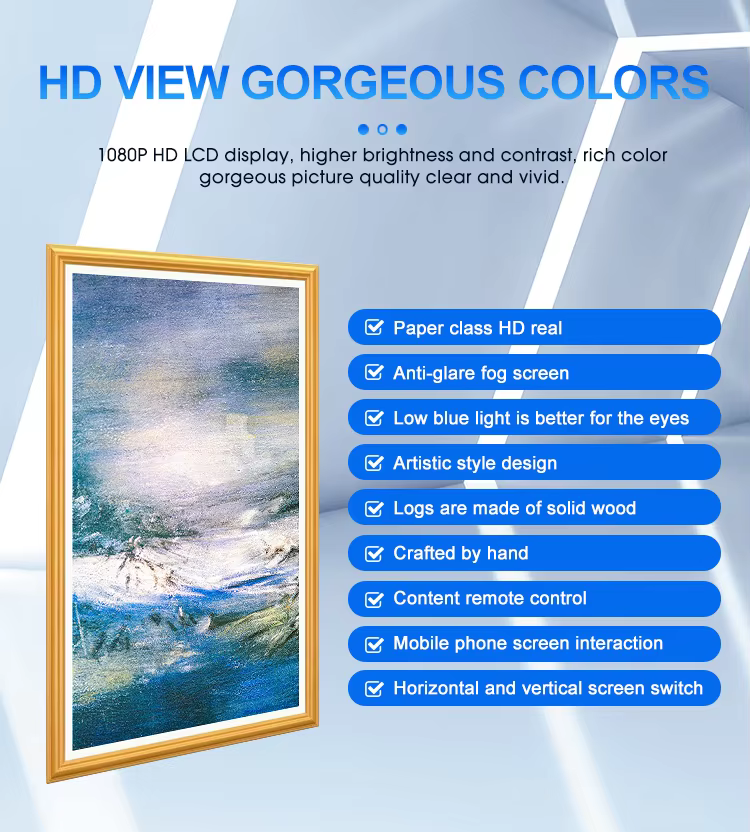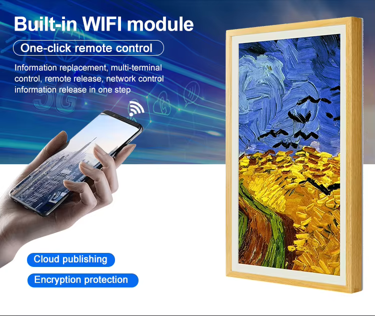 புதிய ஆண்ட்ராய்டு வைஃபை மெல்லிய சுவர் மவுண்ட் டிஸ்ப்ளே கியோஸ்க் டிஜிட்டல் ஆர்ட் ஃபிரேம் என்எஃப்டி 21.5 32 43 55 65 75 85 100 இன்ச் 4kdigital புகைப்பட சட்டப்பூர்வ மூவி போஸ்டர்